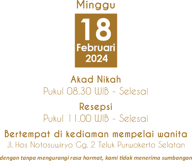 Kami tengadahkan jemari seraya melafadzkan do’a kehadirat Allah SWT, semoga dengan karunia – Nya dapat mengikuti sunnah Rasulullah SAW,dalam membentuk keluarga yang sakinah, mawaddah, warahmah , maka izinkankami menikahkan putra-putri kami tercinta :