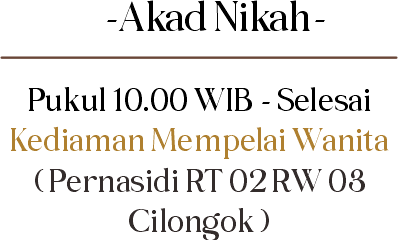 Sebuah babak baru dalam hidup kami dimulai pada 11 Juli 2024, saat kami berdua memutuskan untuk saling mengikat janji sehidup semati. Pada hari ini, 9 Agustus 2024, impian kami untuk membangun rumah tangga bersama akhirnya menjadi kenyataan.